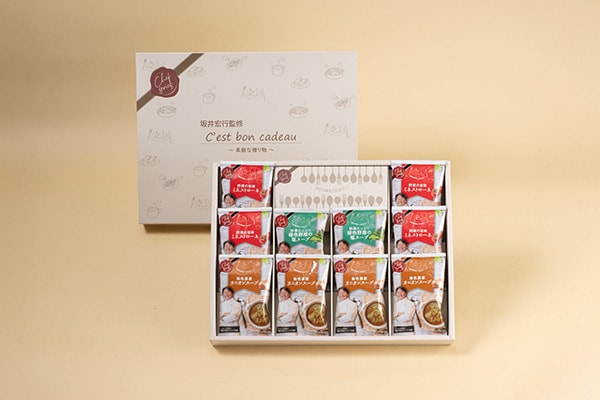 オニオンスープ、ミネストローネ、緑色野菜の塩スープの3種類を フリーズドライで手軽に美味しくご提供致します。フレンチの料理人、坂井宏行監修。懐石料理とフランス料理を融合し、日本人の口に合うフランス料理を研究。常に新たなことに取り組み、挑戦してきた坂井宏行が、ご家庭で簡単に本格スープを食して頂けるよう監修しました。