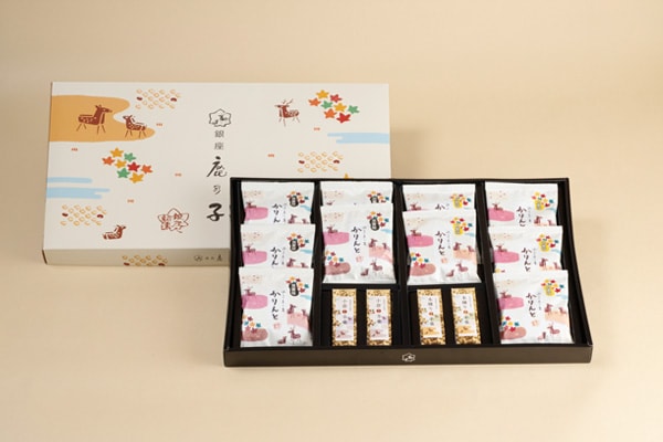 昭和21年より永年手づくり和菓子を探求してきた銘店「銀座鹿乃子」監修の和菓子詰合せです。本練りようかん、小倉羊羹、白蜜と黒蜜2種類のかりんとうをセットにして ご提供いたします。